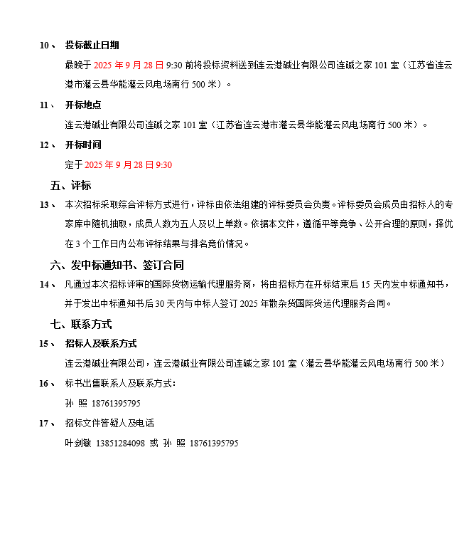 連云港堿業(yè)有限公司散雜貨國際貨運代理服務商項目招標公告