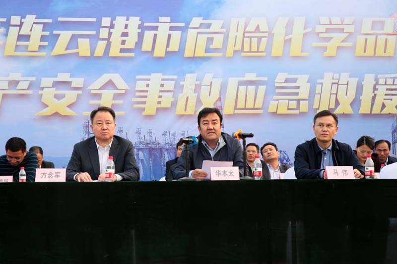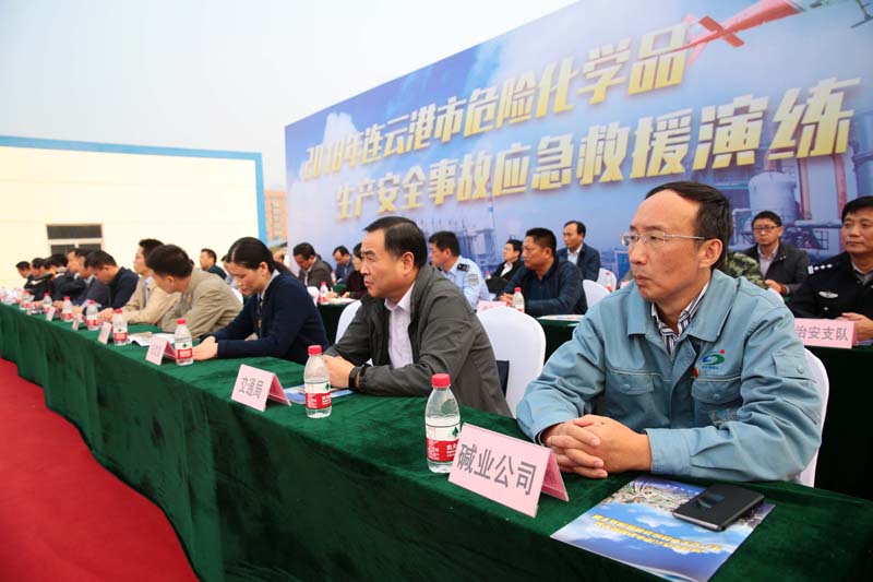 10月24日下午,2018年連云港市危險化學品生產(chǎn)安全事故應急救援演練在堿業(yè)公司舉行。連云港市副市長華本太觀摩了應急演練。市安監(jiān)局、市公安局、市消防支隊、市氣象局、環(huán)保局、堿業(yè)公司等部門和單位參加了此次演練。