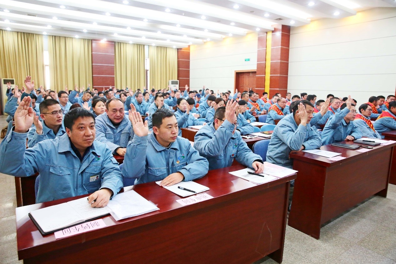 公司黨委副書記、總經(jīng)理李清菊作題為“穩(wěn)中求進為基礎(chǔ),改革創(chuàng)新為動力,積極穩(wěn)妥促改革,凝心聚力謀發(fā)展,為全面完成2019年公司各項目標(biāo)而努力奮斗”的行政工作報告。報告中對公司2018的工作進行了總結(jié),肯定了過去一年公司在安全環(huán)保、生產(chǎn)經(jīng)營、企業(yè)管理、改革發(fā)展等方面取得的成績。同時,分析了企業(yè)在新的一年所面臨的形勢,明確了2019年的目標(biāo)任務(wù)及重點工作。