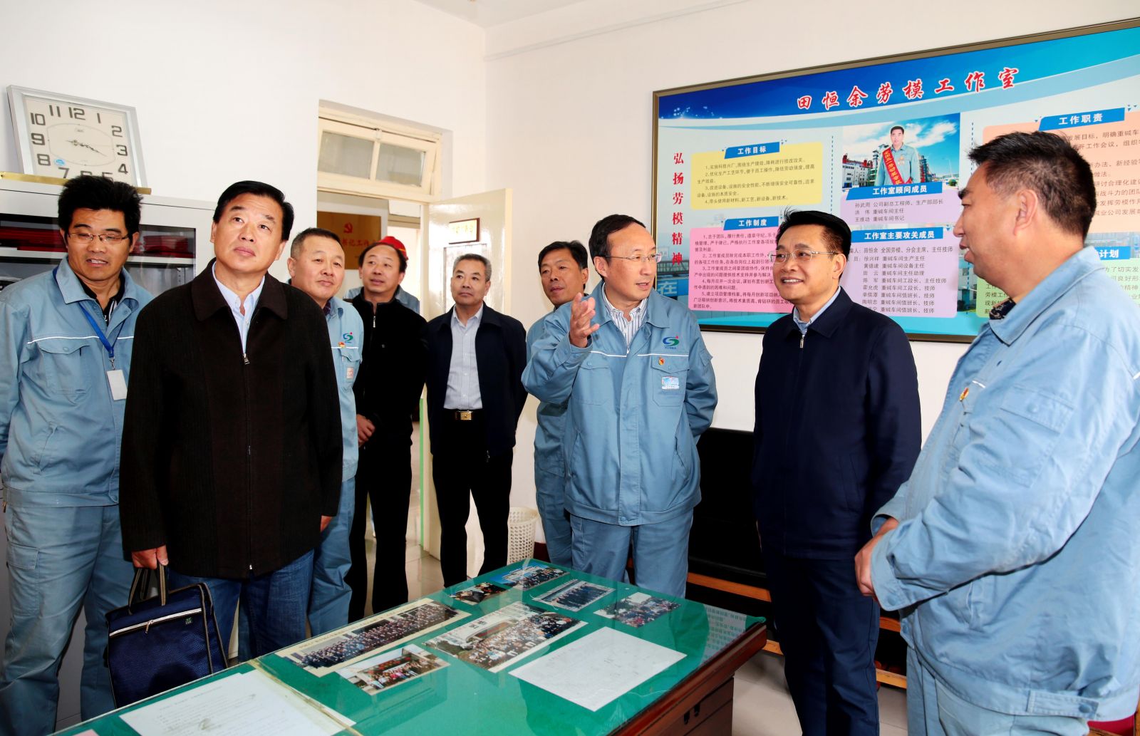 在田恒余勞模工作室,王家全詳細詢問公司勞模情況,當他得知田恒余的“黃泥堵漏法”、“七字操作法”等小發(fā)明、小創(chuàng)造給公司帶來的豐厚經(jīng)濟效益時,他指出,自己優(yōu)秀更要繼續(xù)發(fā)揚好勞模帶頭引領(lǐng)作用,勞模工作室的關(guān)鍵在創(chuàng)新,利用好這平臺,將勞模精神和技能傳承下去,為公司持續(xù)發(fā)展提供人才保障。