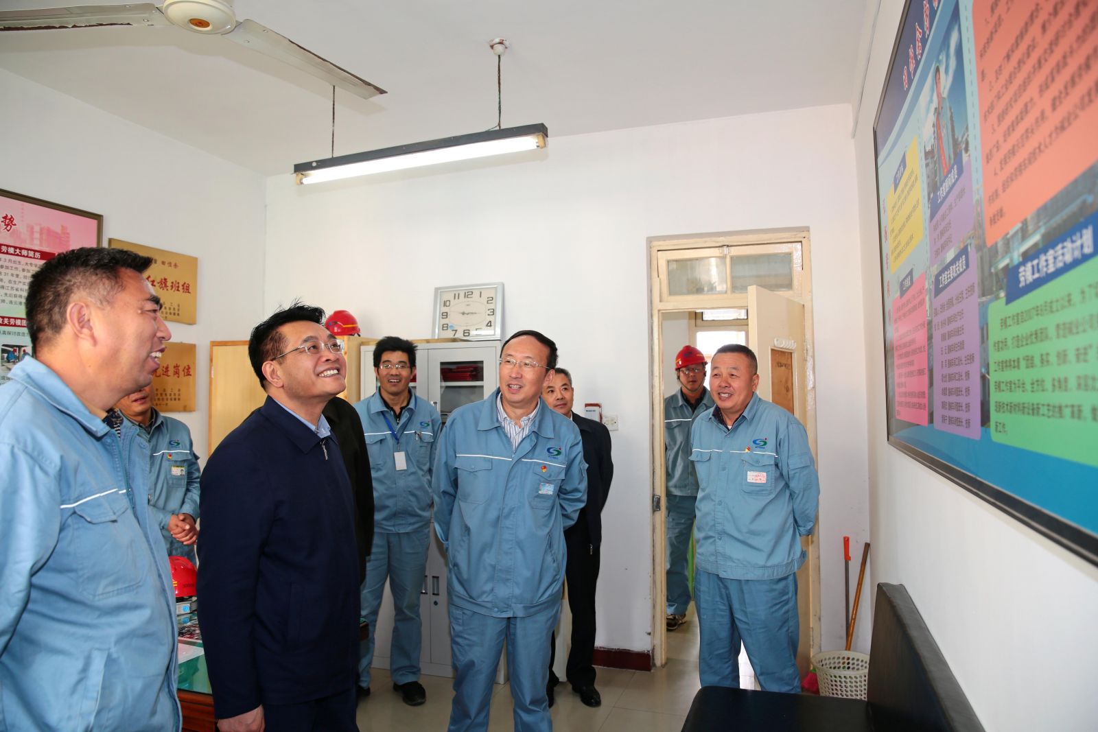 在煅燒車間職工之家,王家全查看了“優(yōu)秀合理化建議”、“巡檢之星”、“崗位練兵卡”等專欄及聽取車間重點介紹后,對堿業(yè)公司煅燒車間以人為本,實行民主管理的做法給予了高度肯定,建議該車間繼續(xù)推進該項活動,讓職工參與民主管理,為職工搭建展現(xiàn)能力,發(fā)揮主人翁地位的平臺,職工與公司共同發(fā)展,實現(xiàn)共贏。