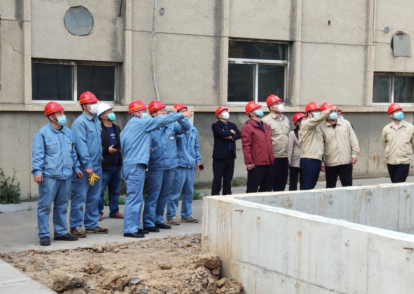 程真何一行人員在堿業(yè)公司董事長(zhǎng)張衛(wèi)民的帶領(lǐng)下實(shí)地考察了外電網(wǎng)系統(tǒng)供電增容改造施工狀況,并就施工質(zhì)量和進(jìn)度提出了意見(jiàn)和建議。