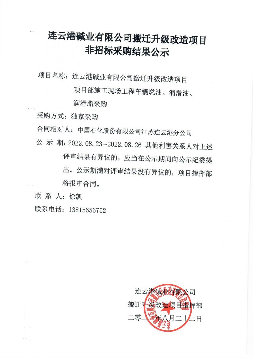 搬遷升級(jí)改造項(xiàng)目施工現(xiàn)場工程車輛燃油、潤滑油、潤滑脂采購結(jié)果公示