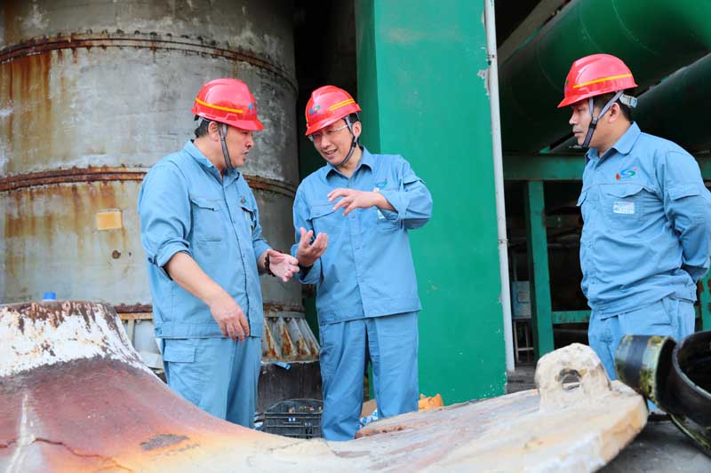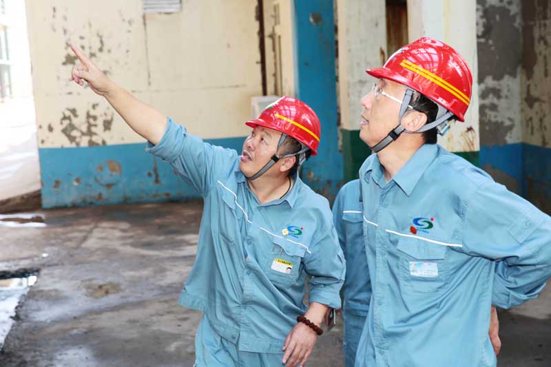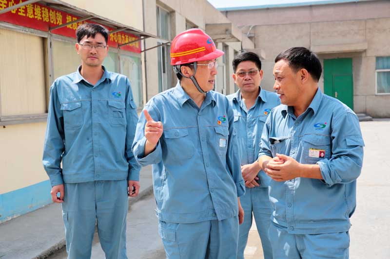 在重堿車間現(xiàn)場,張衛(wèi)民囑咐車間負(fù)責(zé)人,在高溫時節(jié)不僅要抓好生產(chǎn)運行,更要注意酷暑天氣下安全管理和員工的身體健康。