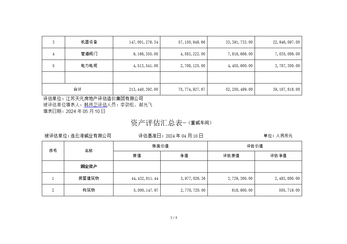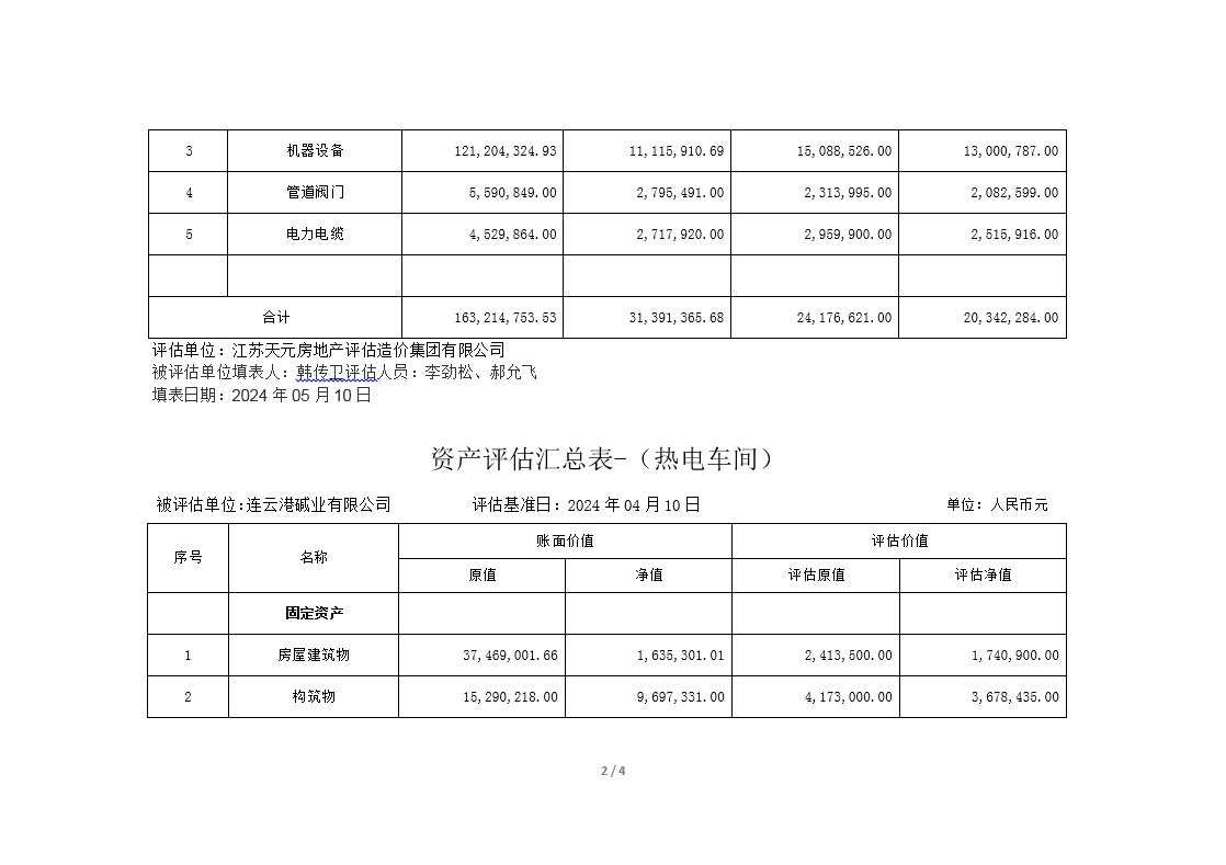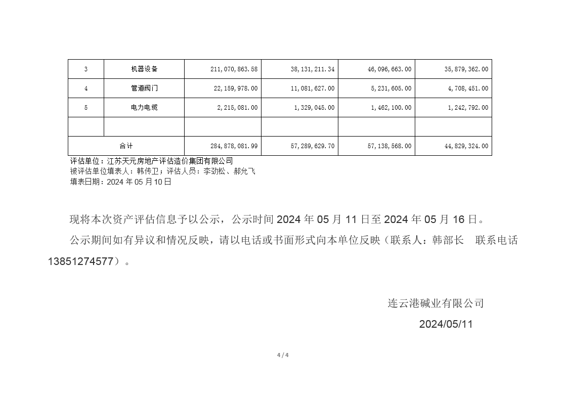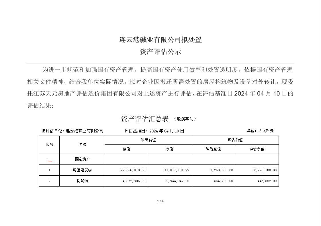 連云港堿業(yè)有限公司煅燒、熱電、重堿車(chē)間資產(chǎn)評(píng)估公示