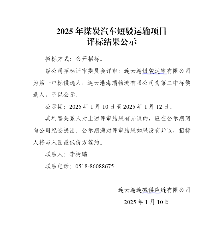 2025年煤炭汽車(chē)短駁運(yùn)輸項(xiàng)目評(píng)標(biāo)結(jié)果公示