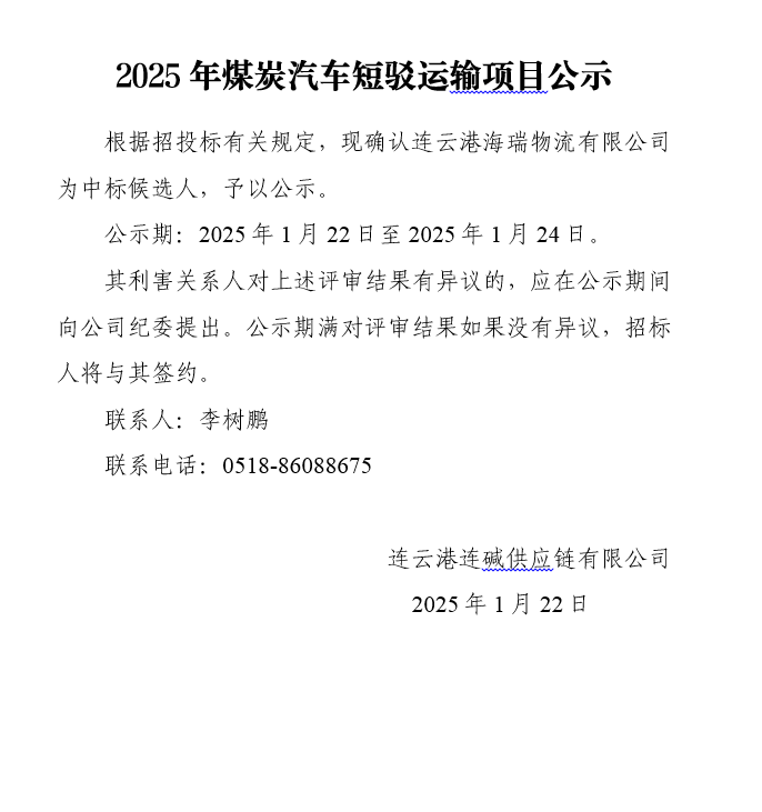 2025年煤炭汽車短駁運(yùn)輸項(xiàng)目公示